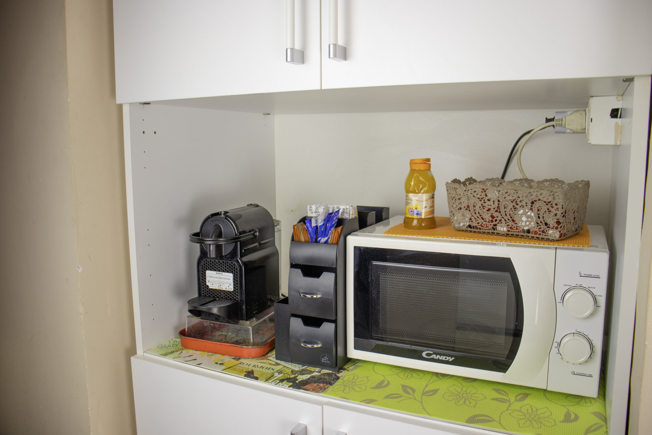 Bollitore, Macchina per caffè e micro onde nelle parti comuni.